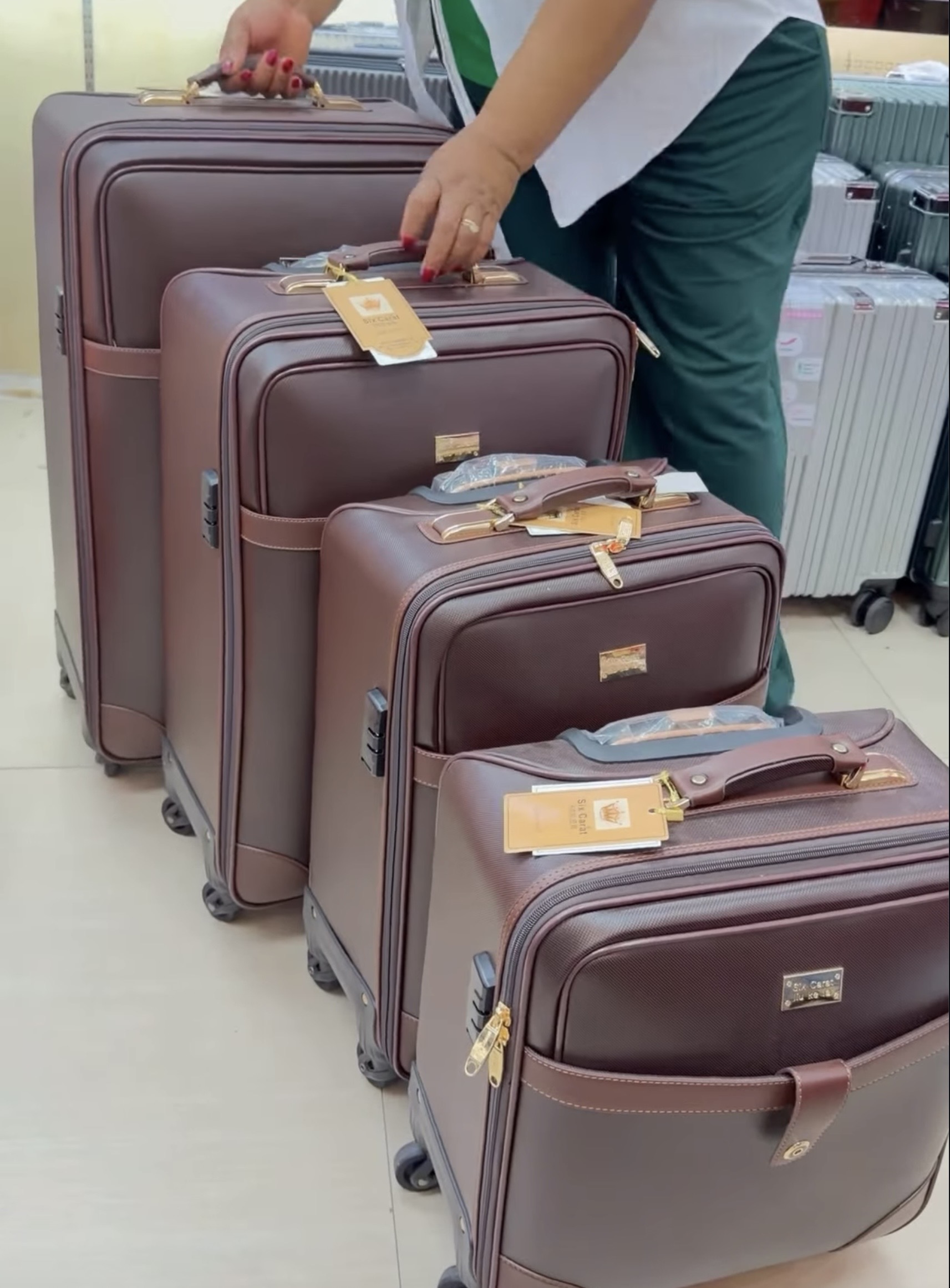 4-Piece Luxury Brown/Brown Leather Luggage Set