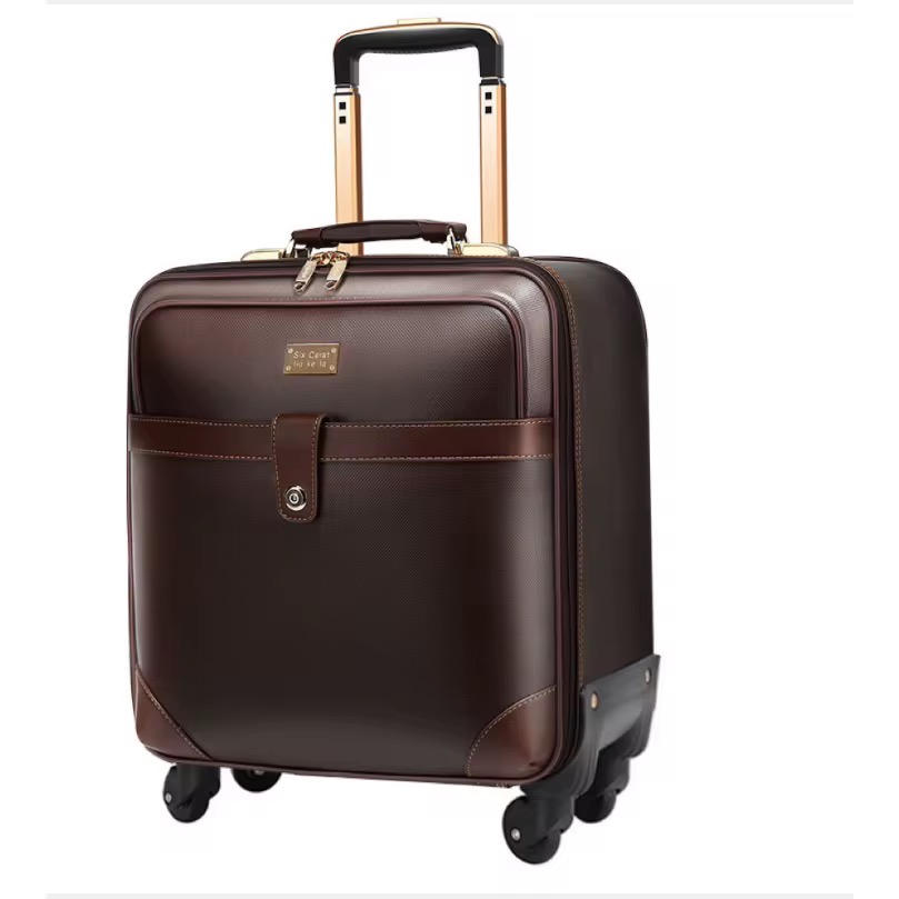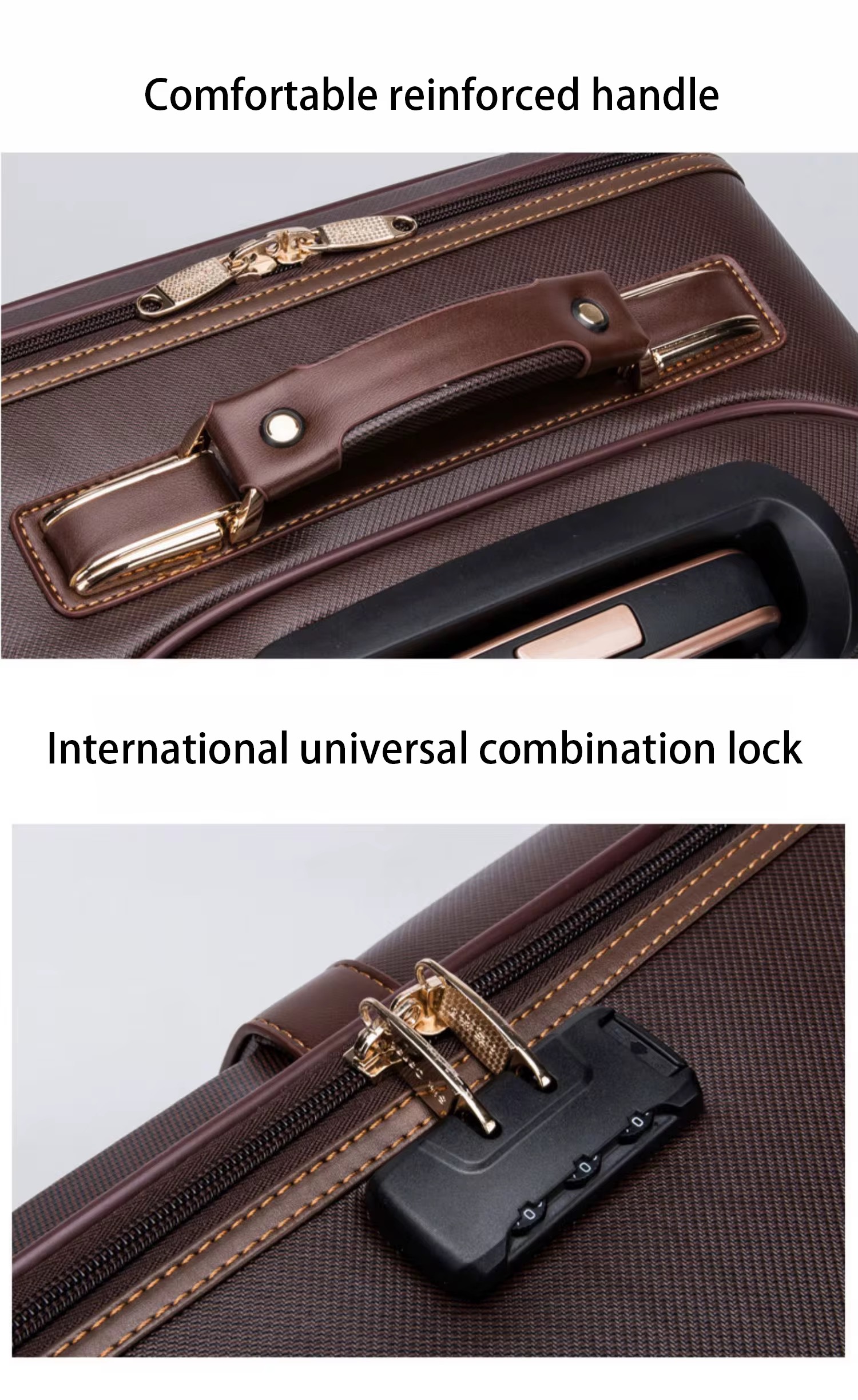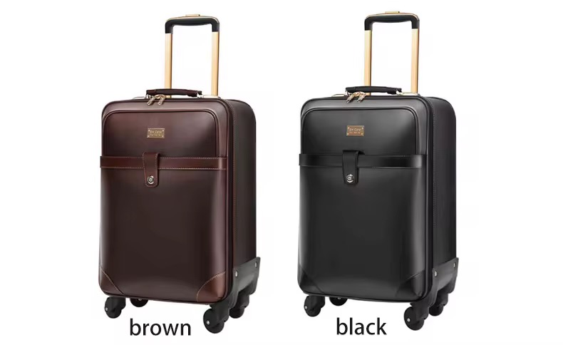 4-Piece Luxury Brown/Black Leather Luggage Set 20-Inch Wheeled Trolley High Quality Soft Carry Suitcase 20-Inch Wheeled