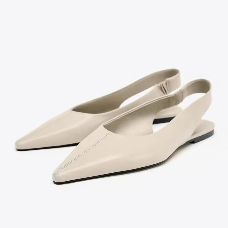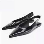 The ultimate chic alternative to heels. These minimalist flats feature a sharp pointed toe and a sleek slingback silhouette in polished black patent. Perfect for a refined, professional look that keeps you comfortable on the go.