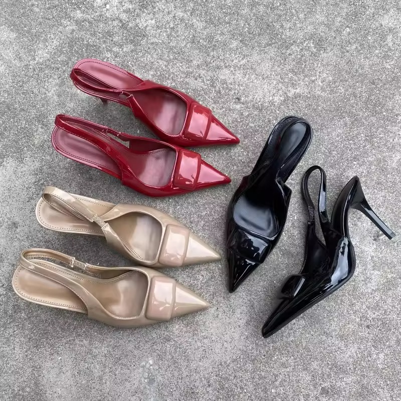 Make a statement with the Harper Pump. This design features a bold, tonal oversized buckle and a sharp pointed toe. Available in classic black, rich burgundy, and soft nude patent finishes to complement any wardrobe palette.